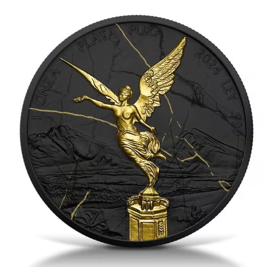 2024 Mexico Libertad Black & Gold Marble 1oz Silver Gilded Coin