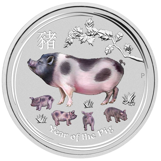 2019 Perth Mint Pig 1/4oz Silver Coloured Coin On Card