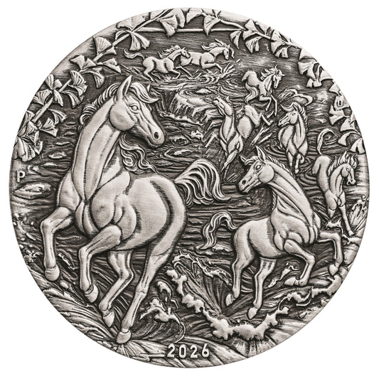2026 Perth Mint Lunar Horse 2oz Antiqued Silver Coin. Pre-order