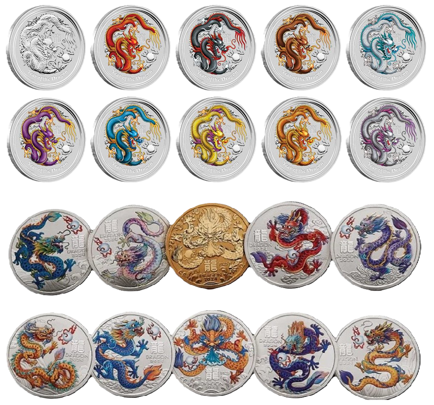 2024 Perth Mint Lunar Dragon 1oz Silver Coloured Coin in Card - All 9 Cards