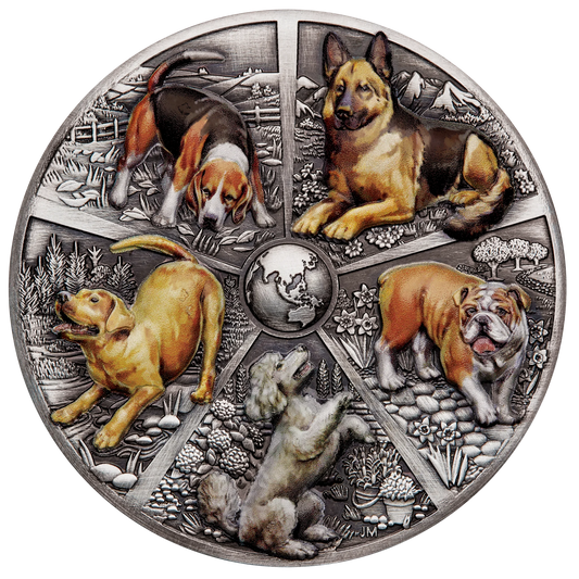 2025 Perth Mint World Popular Dogs 5oz Silver Antiqued HR Coloured Coin - last one