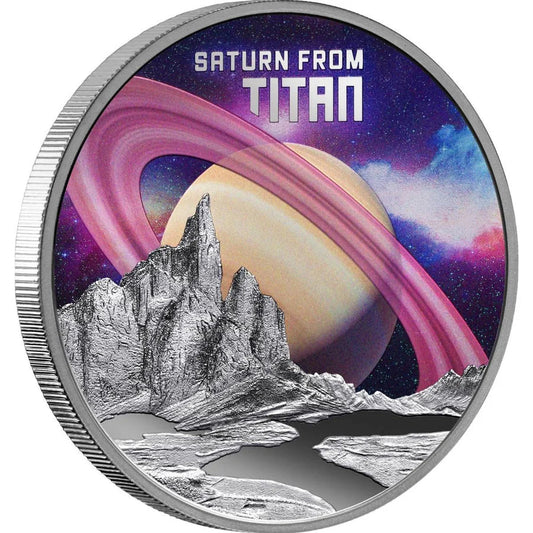 2025 Niue Saturn From Titan 1oz Silver Coloured Proof Coin
