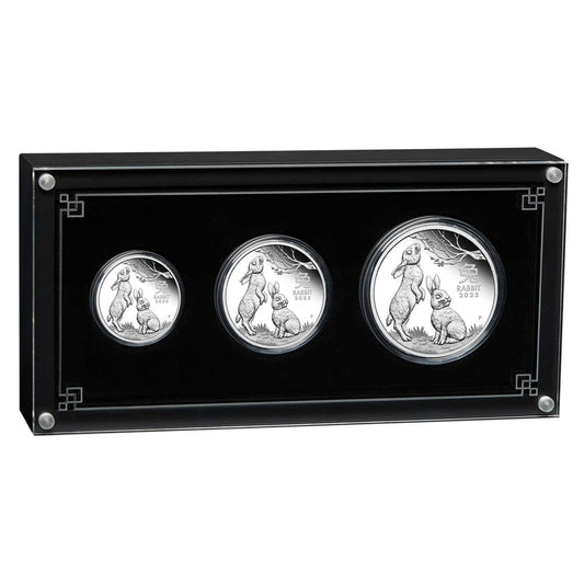 2023 Perth Mint Lunar Rabbit Silver Proof Three-Coin Set - cert under 100