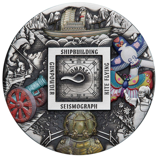 2024 Ancient Chinese Inventions 5oz Silver Antiqued Coloured Coin
