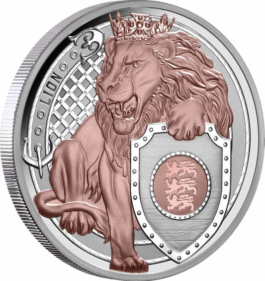 2025 Niue Heraldic Beasts $1 Lion 1oz Rose Gold Plated Silver Proof Coin