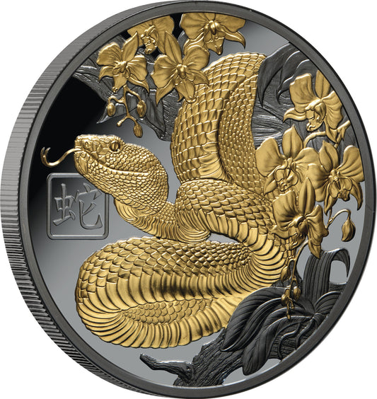 2025 Lunar Year of the Snake $1 Gold-plated 1oz Silver Black Proof Coin