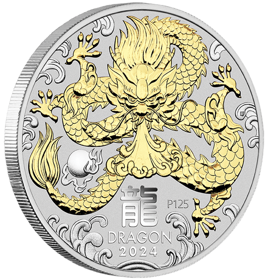 2024 Perth Mint Lunar Dragon 1oz Silver Gilded Coin in Box
