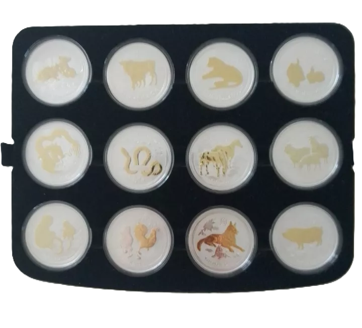 2008-2019 Perth Mint Australian Lunar Series II 12 year 1oz silver gilded coin collection in Official Presentation Box