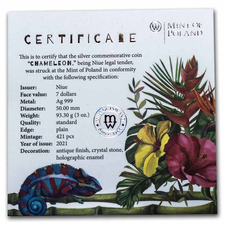 2021 Niue Amazing Animals – Chameleon 3oz Silver Antiqued Coin