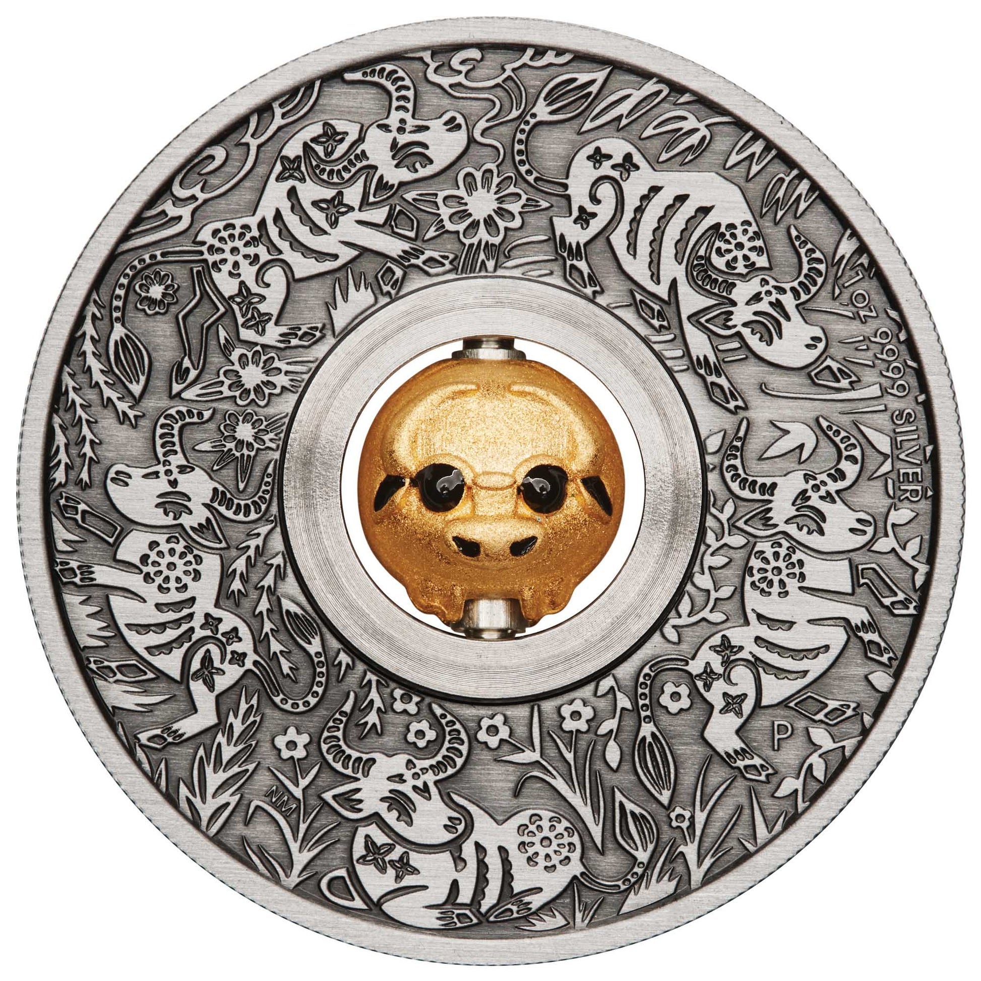 2021 Perth Mint Lunar Year of the Ox Rotating Charm 1oz Silver Antiqued Coin