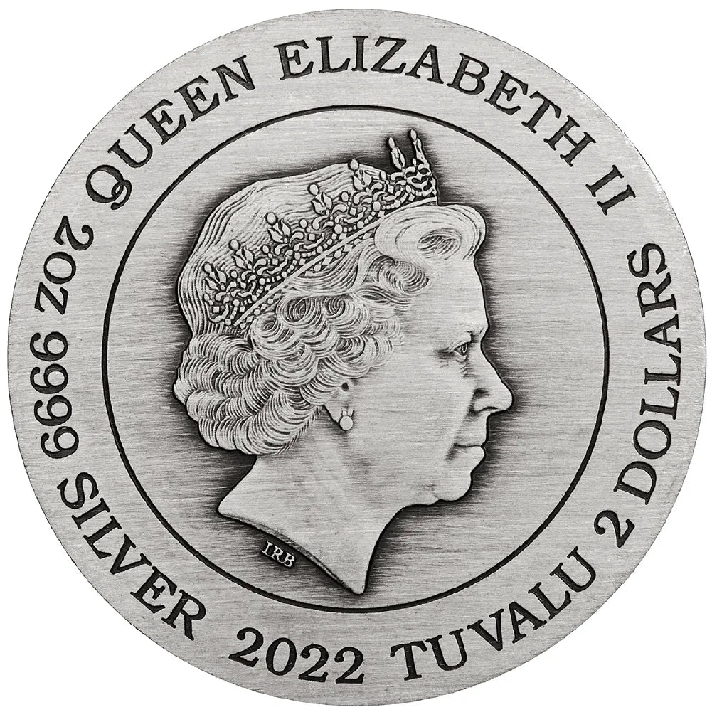 2022 Tuvalu Dragon & Qilin 2oz Silver Antiqued Coloured Coin