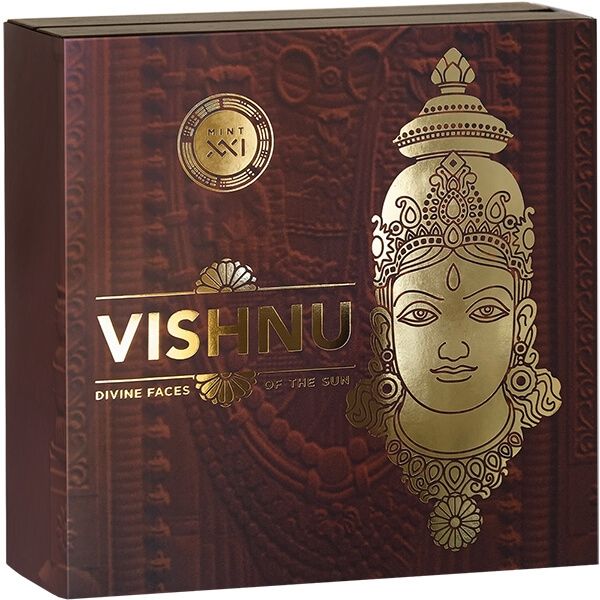A radiant tribute to divine preservation and cosmic balance, the 2023 Vishnu – Divine Faces of the Sun coin honours one of the most revered deities in Hindu tradition. As the Protector of the Universe and preserver of dharma, Vishnu embodies harmony between creation and destruction, light and darkness, order and chaos.