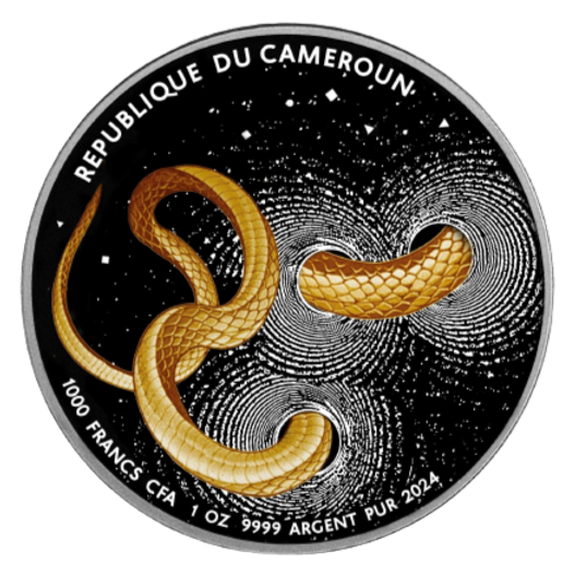 2024 Cameroon Snake 1oz Silver Ruthenium Dark Gilded HR coin