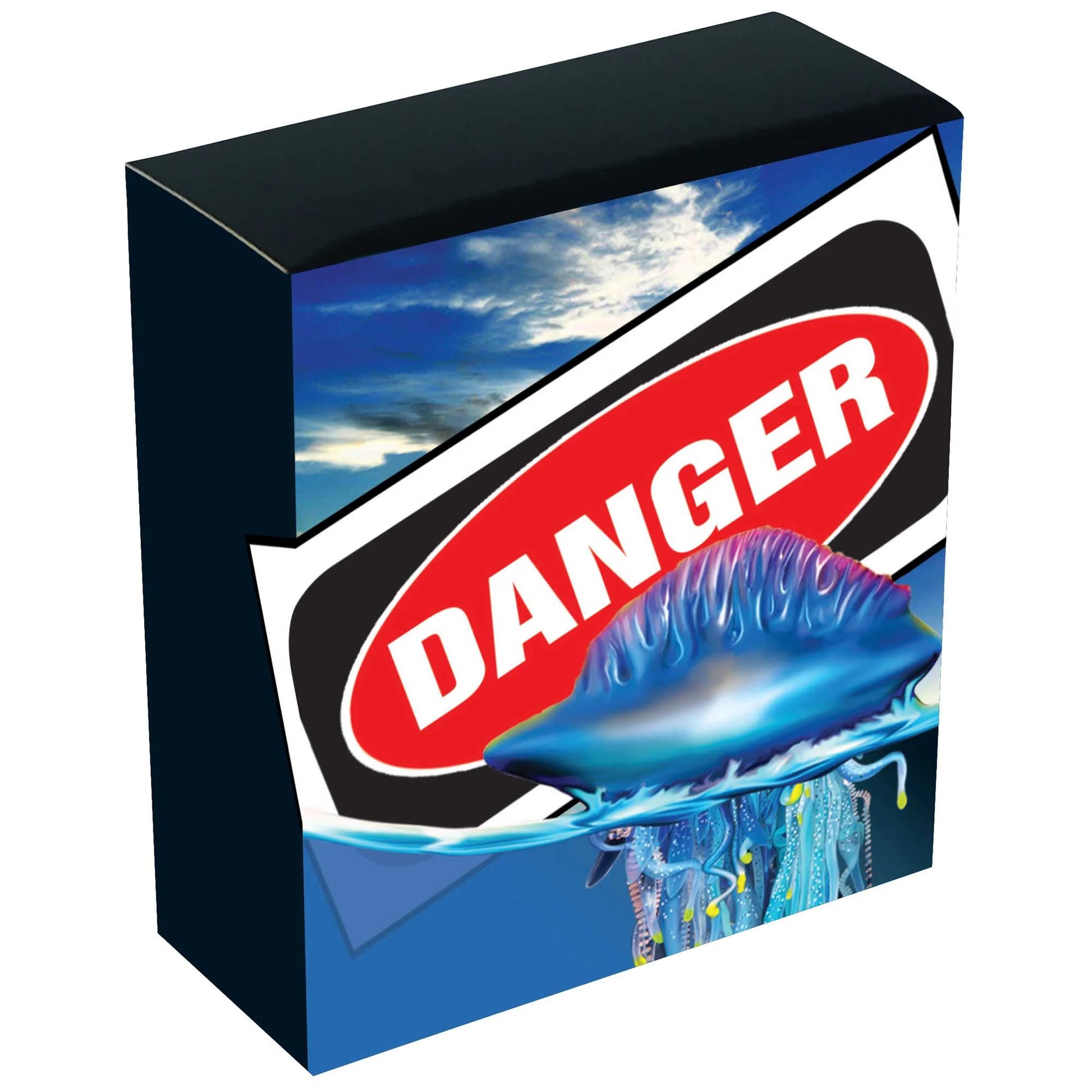 The detailed artwork captures the Bluebottle’s delicate appearance while reminding collectors of the hidden threat beneath the surface.