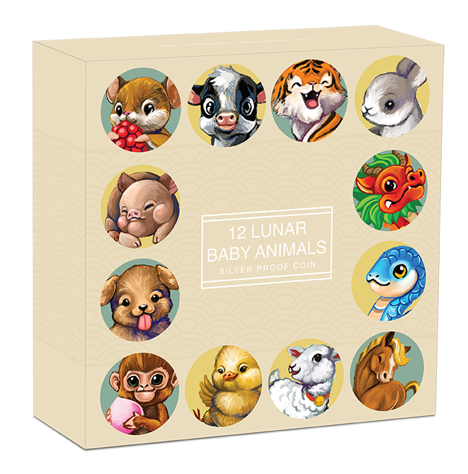 Celebrate the entire lunar cycle in one spectacular release with this beautifully crafted 5oz proof coin, featuring all twelve lunar animals in their adorable baby form. Struck from 99.99% pure silver, this premium collectable blends exceptional artistry, cultural symbolism, and irresistible charm.