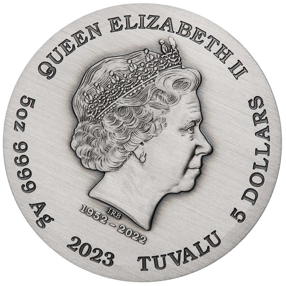 The obverse features the Queen Elizabeth II Memorial Obverse, with the classic Ian Rank-Broadley effigy and the dates of Her Majestyโs reign.