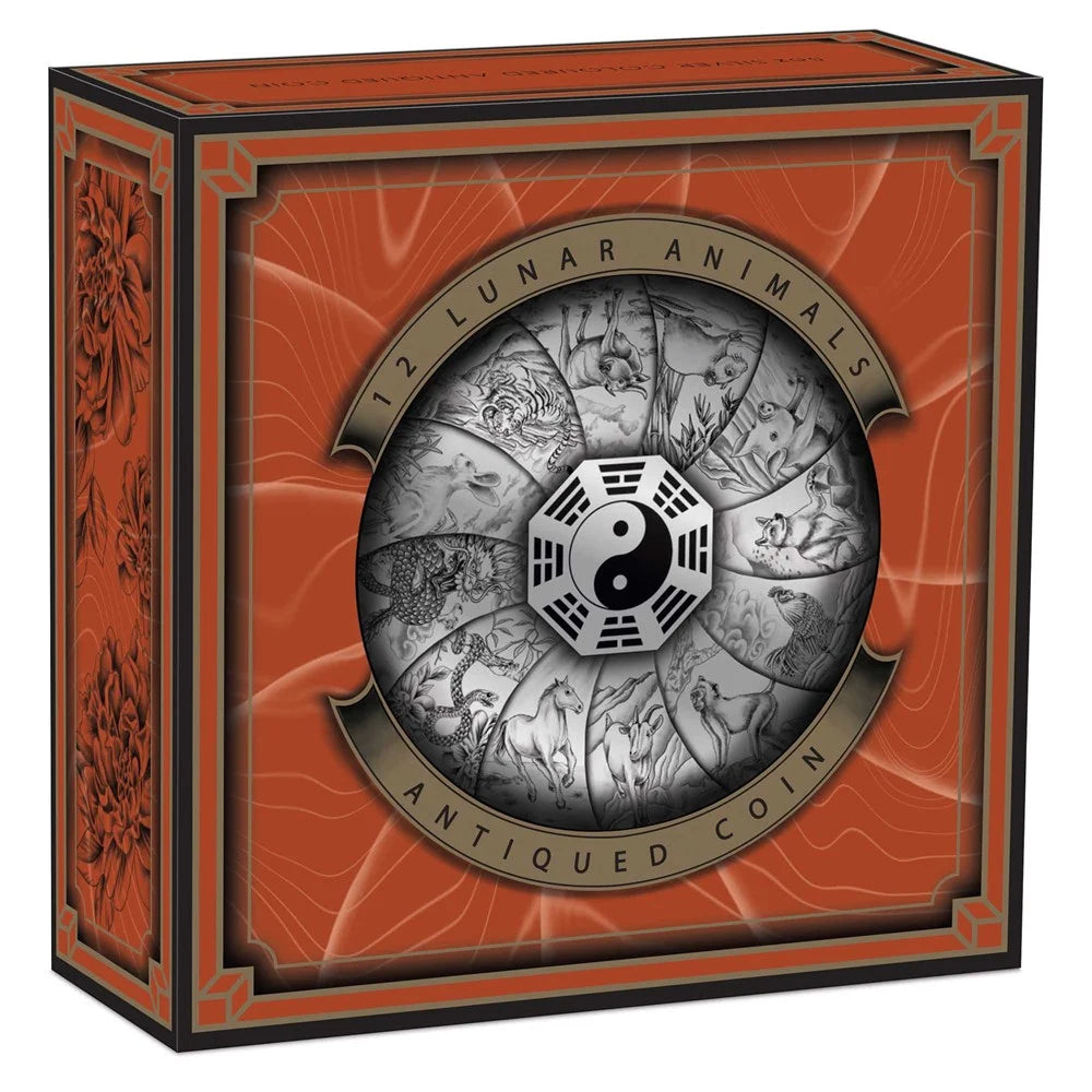Celebrate the complete cycle of the lunar zodiac with this breathtaking 5oz antiqued silver coin from The Perth Mint. Struck from 99.99% pure silver and finished with detailed colour and antique treatment, this release unites all twelve auspicious lunar animals in one exceptional collectorโs piece.ย